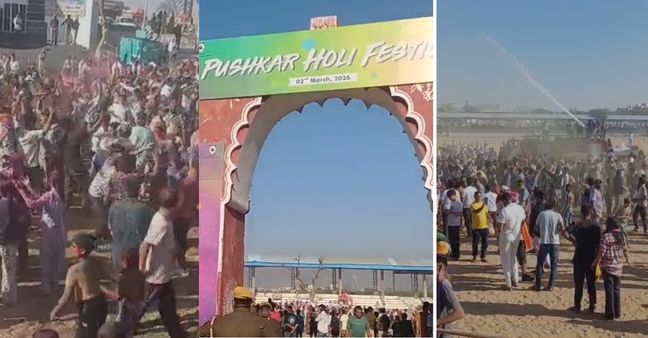 पुष्कर में होली महोत्सव के दौरान जहां एक ओर कड़ा पुलिस बंदोबस्त नजर आया, वहीं दूसरी ओर रंगों की मस्ती अपने चरम पर दिखी. देशी और विदेशी पर्यटकों ने एक-दूसरे को अबीर और गुलाल लगाकर उत्सव मनाया. बाजारों और चौक-चौराहों पर फिल्मी होली गीतों की धुन पर सैलानी झूमते नजर आए. ढोल की थाप और डीजे की धुन पर रंगों से सराबोर पर्यटक जमकर नाचे. पुष्कर नगर पालिका की ओर से अग्निशमन विभाग की गाड़ियों के जरिए पानी की फुहार कर माहौल को और उत्साहपूर्ण बना दिया गया. रंगों की बारिश के बीच पर्यटक खुशी से झूमते दिखे और पुष्कर की होली का आनंद लेते नजर आए.