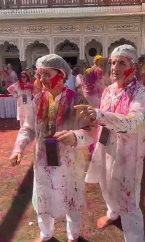 राजस्थान की पूर्व सीएम वसुंधरा राजे ने इस बार खूब होली मनाई. लोगों के साथ उन्होंने होली पर रंग और गुलाल खेले.