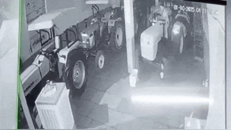कल रात लगभग साढ़े चार बजे दो चोरों ने शोरूम का ताला तोड़ दिया और शटर को भी तोड़ कर अंदर चले आए. एक चोर अंदर आया और उसने वहां से एक नई लाल रंग की स्वराज 855 ट्रैक्टर चोरी कर ली और भाग गया.