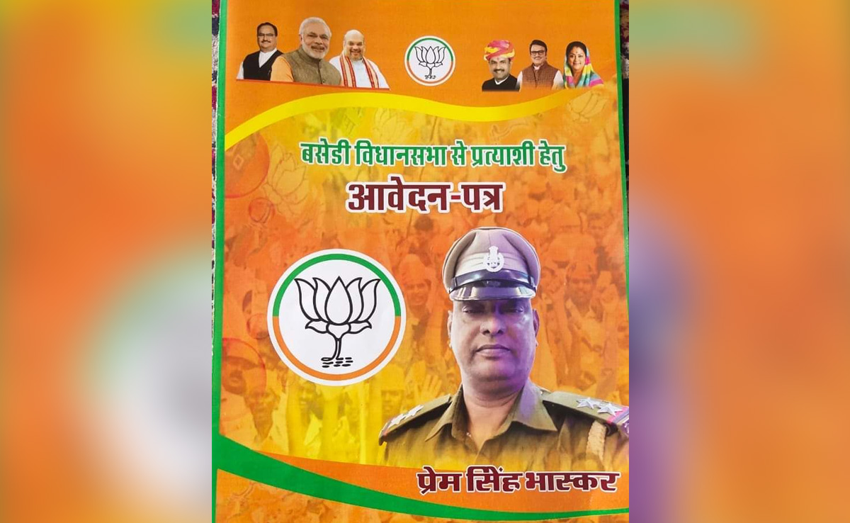 धौलपुर जिले में मानिया थाना इलाके के कुसेड़ा गांव के निवासी वैर थाना अधिकारी प्रेम सिंह भास्कर मौजूदा समय में धौलपुर के जीटी रोड़ के जगजीवन नगर में रह रहे हैं. लाइन हाजिर हो चुके प्रेम सिंह भास्कर धौलपुर की बसेड़ी विधानसभा से बीजेपी की टिकट पर चुनाव लड़ना चाहते हैं, जिसके लिए उन्होंने बीजेपी के संभावित उम्मीदवार के रूप में बैनर छपवाए.