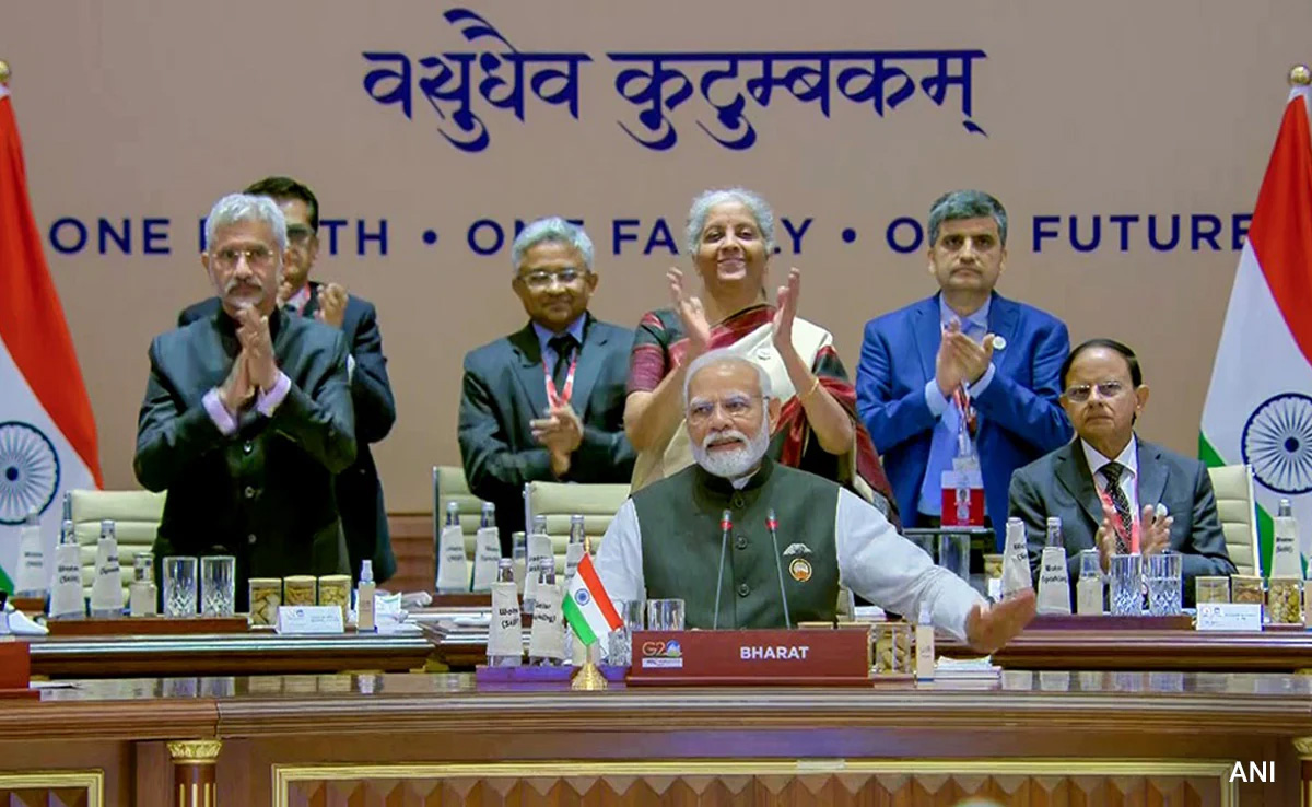 नई दिल्ली : इस बार G-20 की अध्यक्षता कर रहे भारत को एक बड़ी उपलब्धि हासिल हुई है. आखिरकार जी-20 शिखर सम्मेलन में " दिल्ली घोषणा पत्र" (Delhi Declaration) पर आम सहमति बन गई है. कई नेताओं ने इसे ' ऐतिहासिक ' क़रार दिया है. घोषणापत्र स्वीकार किये जाने का ऐलान शनिवार को प्रधानमंत्री नरेंद्र मोदी ने किया.