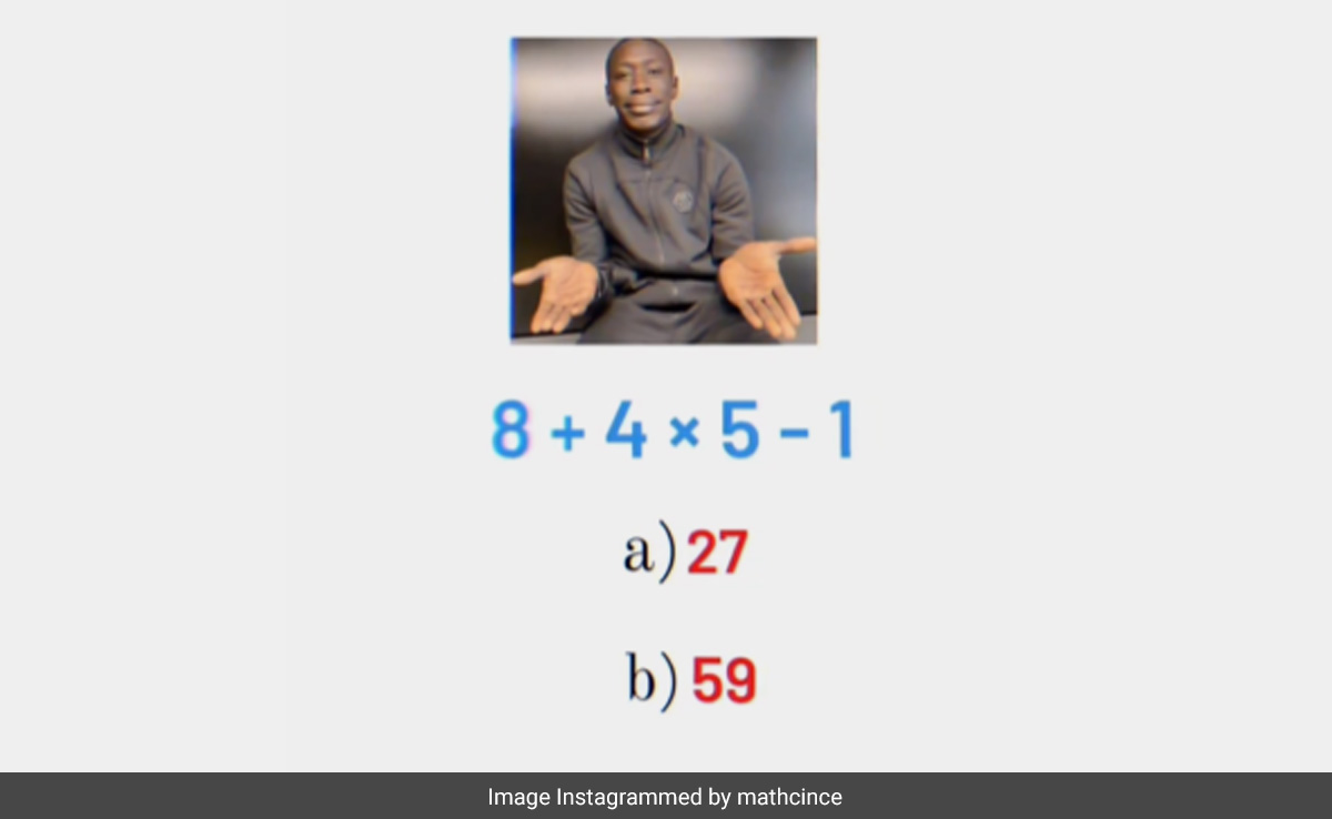 पोस्ट को इंस्टाग्राम पर @mathcince हैंडल से शेयर किया गया था. यह इंस्टाग्राम हैंडल अक्सर गणित से जुड़े कई ब्रेन टीज़र शेयर करता रहता है. उनके नए चैलेंज में प्रश्न इस प्रकार है, "8+4 x 5-1=?"