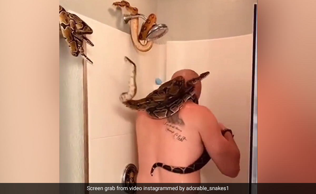बाथरूम में खतरनाक सांपों के साथ नहाता दिखा शख्स