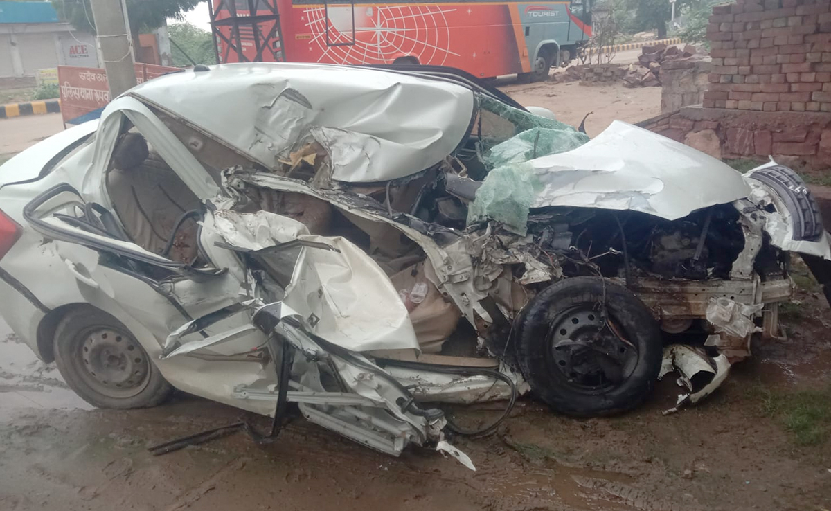 जिले के रूपवास थाना क्षेत्र के रूपवास-भरतपुर राज्य मार्ग पर एक भीषण सड़क हादसे में दो परिवारों के 6 लोगों की मौत हो गई और तीन लोग घायल हो गए. जानकारी के मुताबिक दोनों परिवारों के करीब 9 लोग खाटू श्याम के दर्शन कर अपने घर लौट रहे थे. हादसा उस वक्त हुआ जब देर रात करीब 1 बजे गायों को बचाने के चक्कर में बस ड्राइवर ने सामने से आ रही कार को टक्कर मार दी.