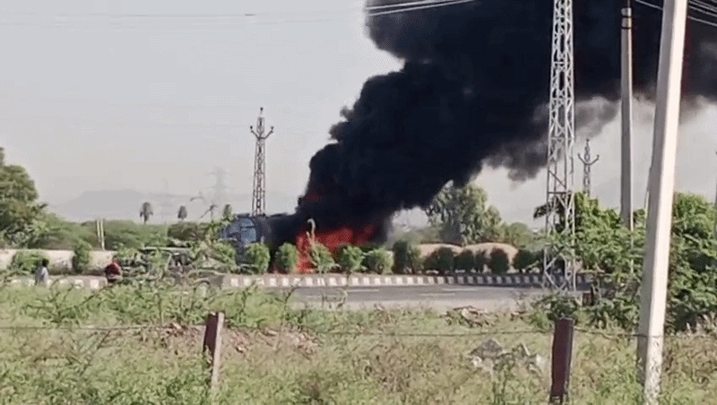 अजमेर के पीसांगन उपखंड क्षेत्र में ब्यावर-अजमेर हाईवे पर आज सुबह उस समय हड़कंप मच गया, जब केमिकल से भरे एक चलती टैंकर में अचानक आग लग गई. जानकारी के अनुसार टैंकर ब्यावर की ओर से अजमेर की तरफ जा रहा था, तभी रास्ते में टायर फट गया. इसके बाद आग लग गई. घटना के बाद मौके पर मौजूद लोगों ने आग बुझाने का प्रयास किया, लेकिन केमिकल भरा होने के कारण आग तेजी से फैलती गई और काबू नहीं पाया जा सका.