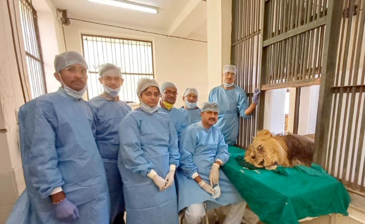 बब्बर शेर रियाज की सर्जरी करती टीम