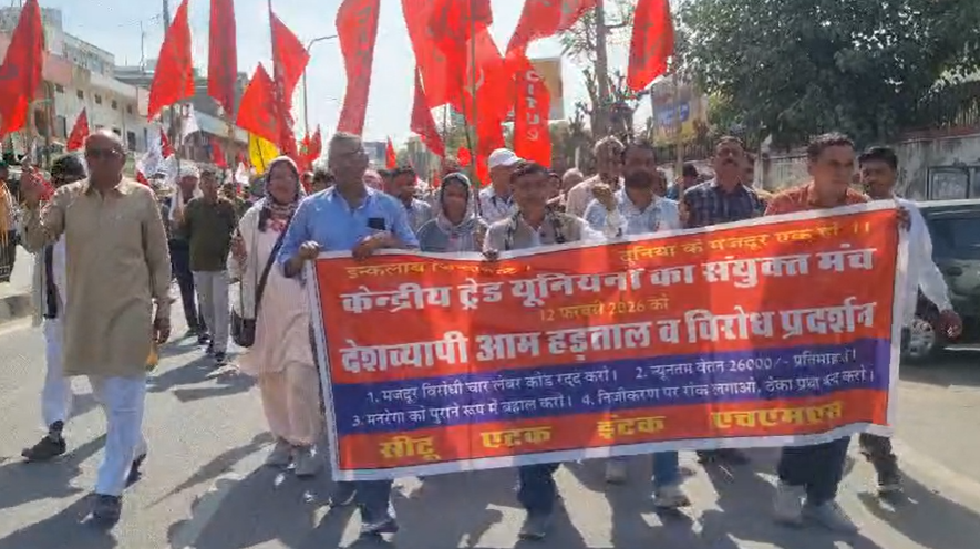 देशव्यापी बंद के आह्वान के तहत आज हनुमानगढ़ में सीटू यूनियन सहित विभिन्न मजदूर संगठनों ने जिला कलेक्ट्रेट पर जोरदार प्रदर्शन किया. प्रदर्शनकारियों ने केंद्र सरकार द्वारा लाए गए चार नए श्रम कानूनों को श्रमिक विरोधी बताते हुए इन्हें तत्काल वापस लेने की मांग की. देशव्यापी बंद के समर्थन में बड़ी संख्या में मजदूर और यूनियन कार्यकर्ता जिला कलेक्ट्रेट परिसर के सामने पहुंचे. यहां आयोजित सभा में वक्ताओं ने केंद्र सरकार की नीतियों की आलोचना करते हुए कहा कि नए श्रम कानूनों से श्रमिकों के अधिकार कमजोर होंगे और कॉरपोरेट घरानों को फायदा पहुंचेगा.