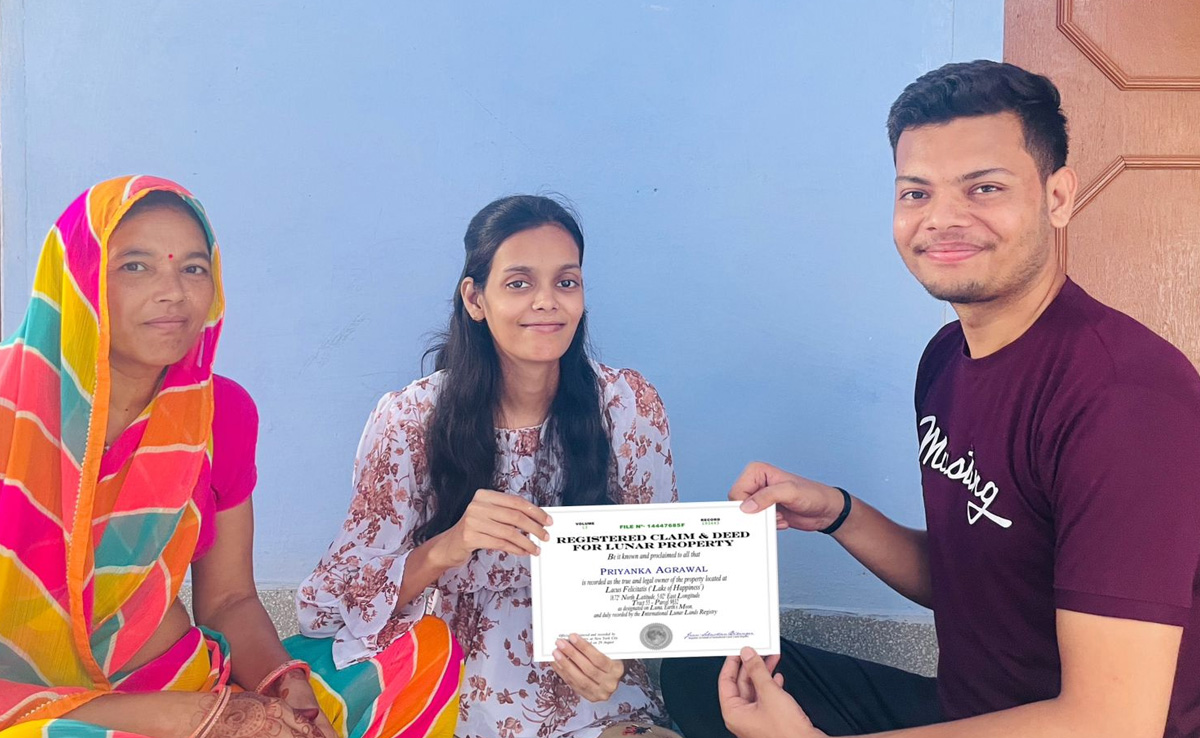 करीब डेढ़ माह की प्रोसेस के बाद रक्षाबंधन से एक दिन पूर्व आख़िरकार उन्हें रजिस्ट्रेशन मिल गया है. साथ में  जमीन खरीदी का प्रमाण पत्र और ज़मीन का नक़्शा भी मिला है. उन्होंने बताया कि चाँद पर ज़मीन ख़रीदने में क़रीब 150 डॉलर का खर्च आया है.
