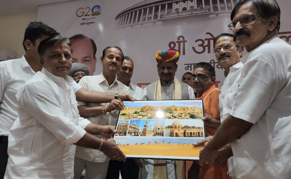 दरअसल लोकसभा स्पीकर ओम बिरला मंगलवार को जैसलमेर के दो दिवसीय दौरे पर पहुंचे. उन्होंने रामदेवरा में बाबा रामदेव की पूजा-अर्चना की. जिसके बाद बिरला एयरपोर्ट से BSF के डाबला कैंप पहुंचे और BSF कैंप में जवानों से मिलकर उनके साथ लंच किया. स्पीकर ने BSF डाबला से उत्कृष जैन भवन में भारतीय जनता पार्टी के प्रबुद्धजन लोगों के संवाद कार्यक्रम में पहुंचे.