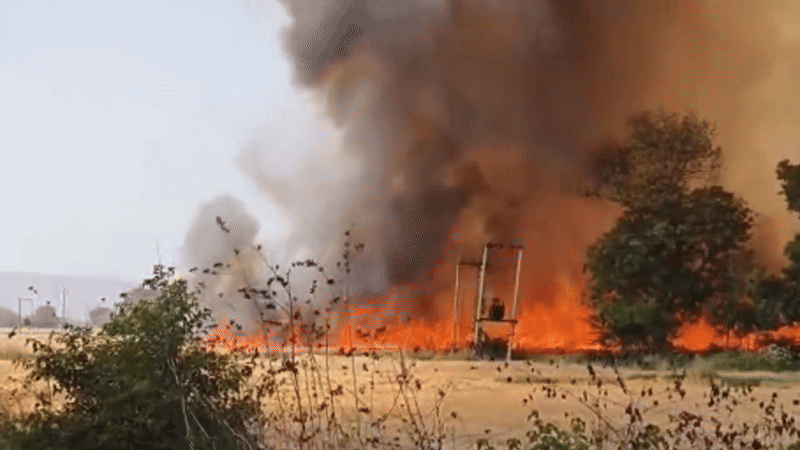 आग को बुझाने के चक्कर में 2 किसान झुलसे