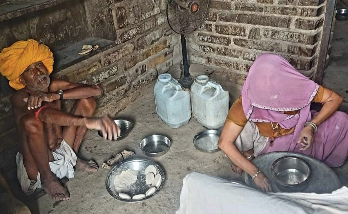 यह मामला झालावाड़ जिले के देवरी गांव पंचायत के रूडलाव का है. खास बात यह है कि 70 साल के बुजुर्ग रामनारायण उर्फ भैरो बाबा को सुनाई नहीं देता है. वहीं उनकी पत्‍नी की आंखों की रोशनी नहीं है. ऐसे में यह दोनों एक दूसरे का सहारा बने हैं. बुजुर्ग दम्‍पति की कोई संतान भी नहीं है. ऐसे में दोनों बुजुर्ग किसी तरह से अपनी जिंदगी की गाड़ी को खींच रहे हैं.