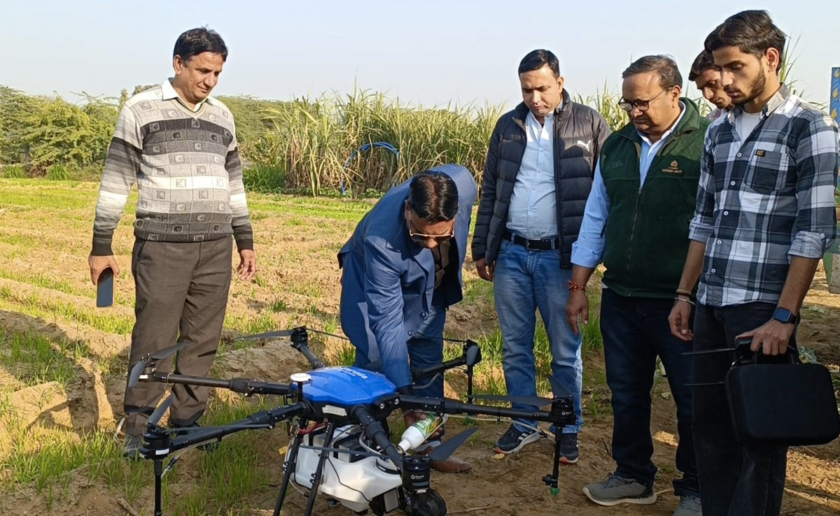 बताया गया कि विकसित भारत संकल्प यात्रा के तहत गांव डारडा हिन्द में जिला कलेक्टर ओम प्रकाश बैरवा ने कहा कि किसान अपने खेतों में ड्रोन तकनीक का इस्तेमाल कर दवा एवं नैनो उर्वरक का छिड़काव कर कम समय में कीट व्याधि के नियंत्रण हेतु दवा का छिड़काव आसानी से कर सकते है.