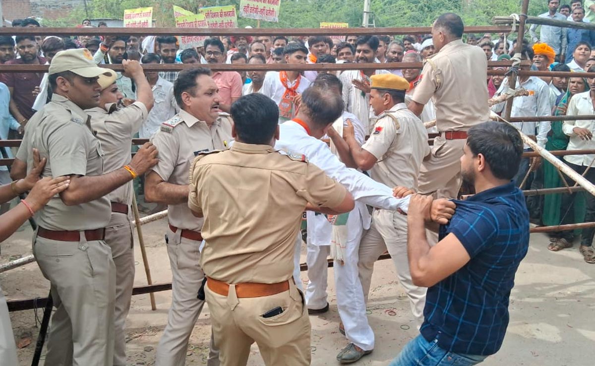बेरिकेड्स तोड़ अंदर घुसे प्रदर्शनकारी