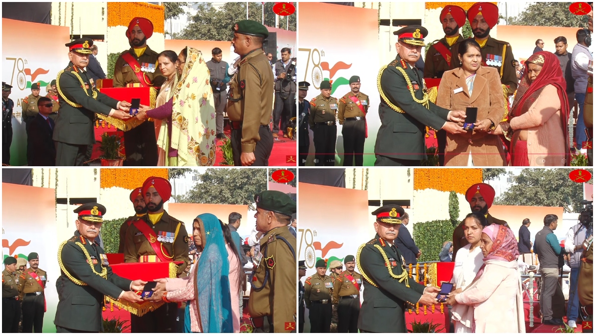 मुख्य अतिथि सेनाध्यक्ष जनरल उपेंद्र द्विवेदी की मौजूदगी में जयपुर के महल रोड पर 78वीं सेना दिवस परेड का आयोजन हुआ. जनरल द्विवेदी ने देश के लिए सर्वोच्च बलिदान देने वाले 5 जांबाजों को (मरणोपरांत) सेना मेडल वीरता पुरस्कार प्रदान किए:-