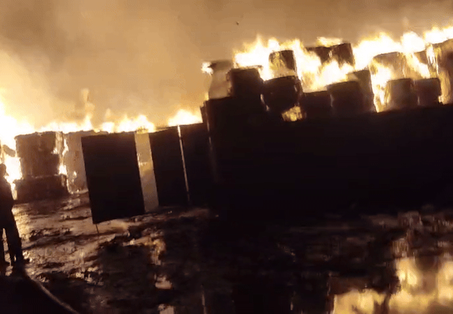 दमकल की दर्जनों गाड़ियां आग बुझाने में जुटीं