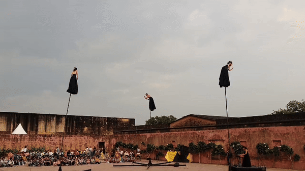 शो का आयोजन जयगढ़ फोर्ट के सुभट निवास प्रांगण में किया गया, जहां आसमान में 6 मीटर ऊंचे मेटल पोल पर हवा में झूलते कलाकारों की प्रस्तुति ने दर्शकों को कुछ क्षणों के लिए हैरानी में डाल दिया.