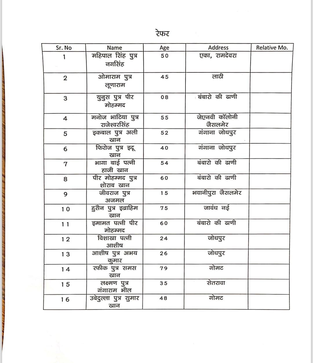 16 लोग जोधपुर रेफर