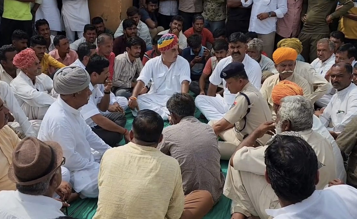जैसलमेर में हादसे में युवक की मौत के बाद धरने पर बैठे लोग.