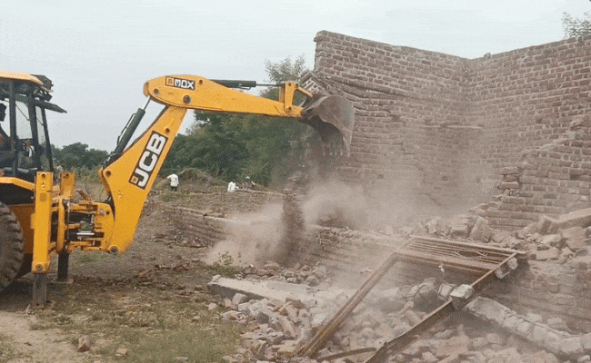 जेसीबी से कई पक्के और कच्चे निर्माण मकानों को गया तोड़ा