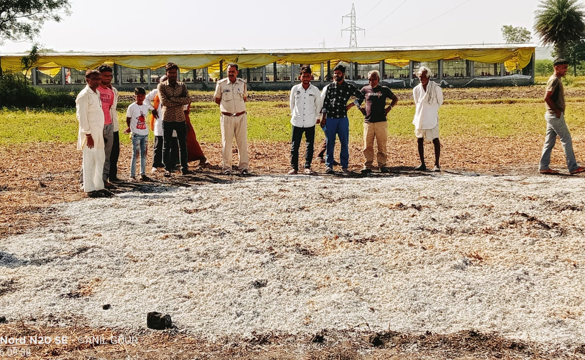 शुक्रवार को झालावाड़ से बड़ा दुःखद मामला सामने आया. यहां ज़िले के मनोहर थाना उपखंड की ग्राम पंचायत बांसखेड़ा के छान गांव में एक किसान की खेत में पड़ी हुई सोयाबीन की फसल को अज्ञात बदमाशों ने जलाकर नष्ट कर दी. फसल को जली हुई देखकर किसान का परिवार सदमे में आ गया. किसान द्वारा पुलिस को रिपोर्ट सौंपी गई है, जिसमें फसल जलाने वाले बदमाशों के विरुद्ध कार्यवाही की मांग की गई है. किसान के खेत में 8 बीघा कटी हुई सोयाबीन की तैयार फसल खलिहान में पड़ी हुई थी, जिसको अज्ञात बदमाशों ने आग लगाकर ख़ाक कर दिया.