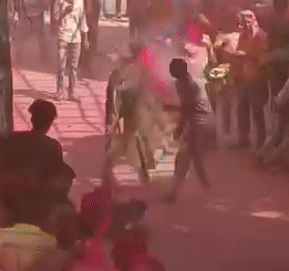 होली खेल रहे लोगों के बीच आया सांड