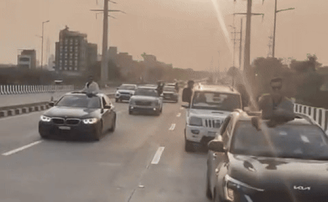 वायरल वीडियो में साफ देखा जा सकता है कि इस रईसजादे ने गाड़ियों के काफिले से सड़क की पूरी लेन को ब्लॉक कर दिया था, जिससे आम लोगों को निकलने में काफी मशक्कत करनी पड़ी. चौंकाने वाली बात यह है कि लड़कों के साथ-साथ छात्राएं भी चलती गाड़ियों की विंडों से बाहर निकलकर हवा में हाथ लहराते हुए स्टंट करती नजर आईं. सरेआम की गई इस कानून की अनदेखी ने पुलिस प्रशासन की सुरक्षा व्यवस्था पर भी सवाल खड़े कर दिए हैं.