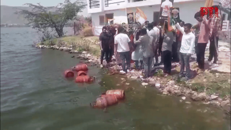 Ajmer Youth Congress Protest: अजमेर में युवा कांग्रेस कार्यकर्ताओं ने गैस सिलेंडर की कीमतों में बढ़ोतरी के विरोध में आनासागर झील में खाली सिलेंडर फेंके. अजमेर में सांकेतिक प्रदर्शन के बाद सिलेंडरों को पानी से निकाल लिया गया. कार्यकर्ताओं ने अजमेर के वैशाली नगर में चौपाटी के पास गैस सिलेंडरों के साथ एक विरोध रैली निकाली. झील क्षेत्र के आसपास से लकड़ियां एकत्रित कर संदेश दिया कि मध्यम वर्ग के लिए सिलेंडर भरवाना मुश्किल हो गया है.