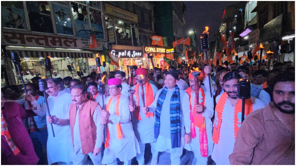 शहर की सड़कों पर कल शाम एक अलग ही नजारा था. प्रधानमंत्री नरेंद्र मोदी के दौरे को लेकर बीजेपी कार्यकर्ताओं ने शहीद स्मारक क्लॉक टावर से विशाल मशाल जुलूस निकाला. हाथों में जलती मशालें और बीजेपी के झंडे थामे कार्यकर्ता 'भारत माता की जय' के नारे लगाते हुए पूरे जोश में नजर आए.