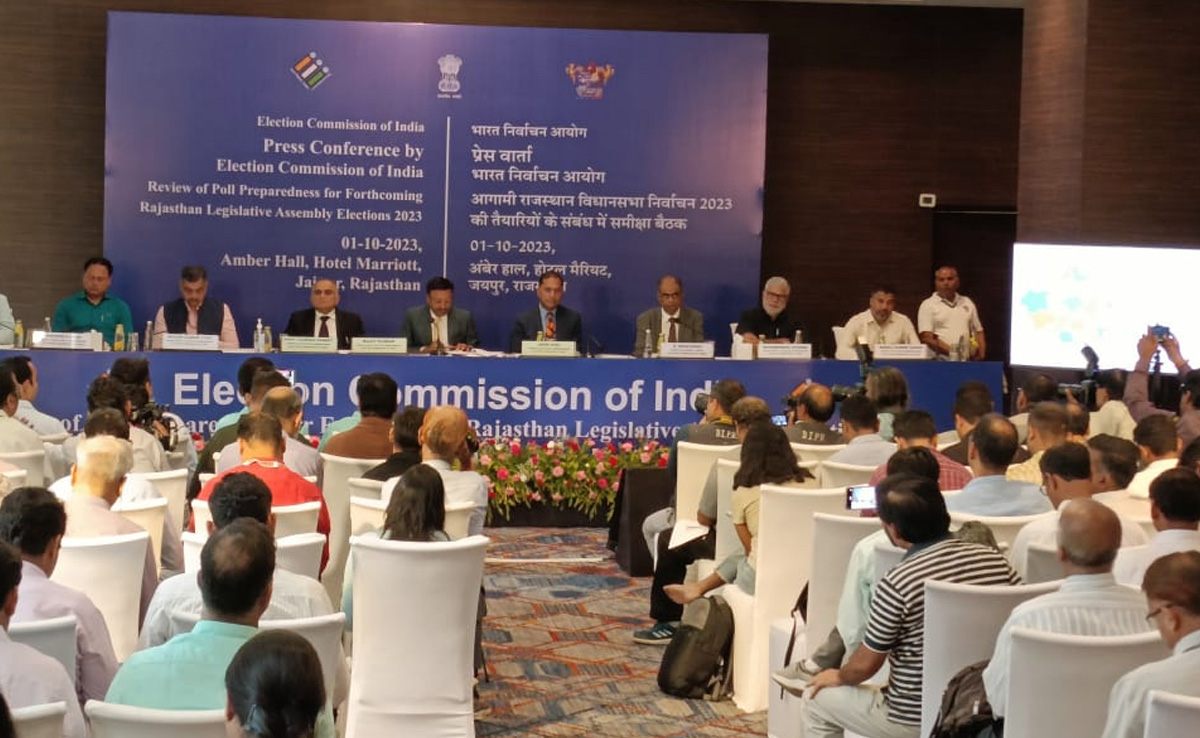 राजस्थान में विधानसभा चुनाव की तैयारियों का जायजा लेने के लिए चुनाव आयोग की उच्च स्तरीय टीम पिछले तीन दिनों से जयपुर दौरे पर है. रविवार को मुख्य चुनाव आयुक्त राजीव कुमार (Rajiv Kumar) ने मैरियट होटल में प्रेस कॉन्फ्रेंस करते हुए अपने दौरे के बारे में कई अहम जानकारियां साझा कीं. इसके साथ ही उन्होंने आगामी विधानसभा चुनाव में जनता को दी जाने वाली सुविधाओं के बारे में भी विस्तार से बताया.