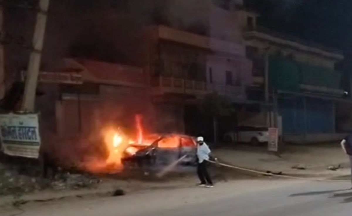 सीकर के उद्योग नगर थाना क्षेत्र में जयपुर-झुंझुनू बाईपास स्थित आरटीओ चौराहे के पास सोमवार देर रात तेज रफ्तार कार ट्रांसफार्मर से टकराने के बाद जल उठी. हादसे में कार सवार युवक मौके से फरार हो गए. सूचना पर उद्योग नगर थाना पुलिस और दमकल की टीम ने करीब 45 मिनट की मशक्कत के बाद आग पर काबू पाया. तब तक गाड़ी पूरी तरह जल चली चुकी थी.
