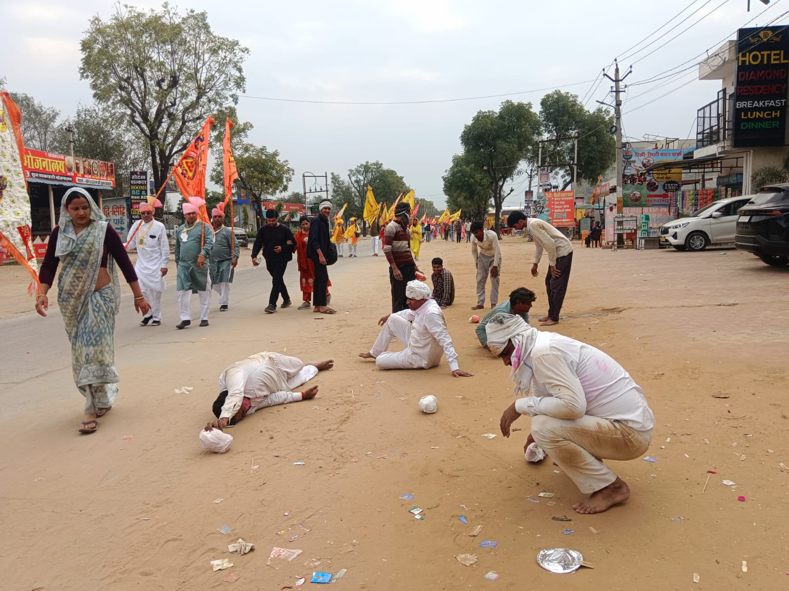 खाटूश्यामजी में चल रहे बाबा श्याम के 8 दिवसीय वार्षिक फाल्गुन मेले में आस्था भक्ती और श्रद्धा के अलग-अलग रंग दिखाई दे रहे हैं, जहां लाखों भक्त हाथों में निशान लेकर पैदल पदयात्रा कर रहे हैं. वहीं कुछ भक्त रींगस से खाटू धाम तक पेट पलायन यात्रा कर रहे हैं. अनेक भक्त हरिद्वार, जयपुर, हरियाणा और दिल्ली से पदयात्रा करते हुए खाटू धाम पहुंच रहे हैं, जिसकी जैसी श्रद्धा है वैसे ही उसकी बाबा में आस्था दिखाई दे रही है.