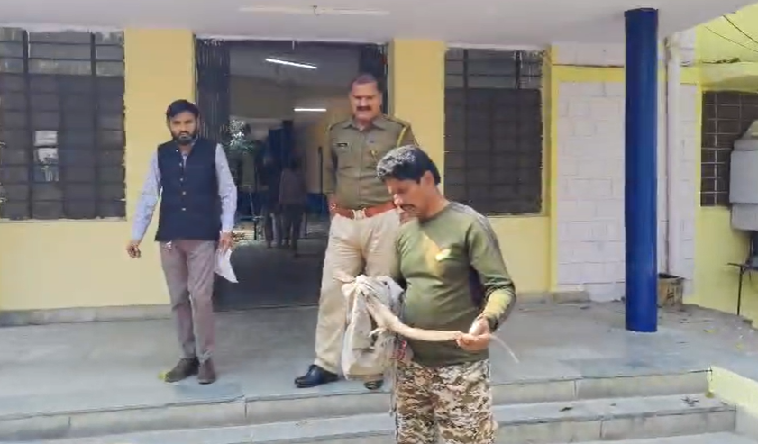 कोटा के एक थाने में जंगली छिपकली मॉनिटर लिजार्ड घुस गई. वहीं सूचना के बाद मौके पर पहुंचे स्नेक कैचर गोविंद शर्मा ने छिपकली का रेस्क्यू किया. बताया जा रहा है कि थाने के रिकॉर्ड रूम से ढाई फीट की जंगली छिपकली को पकड़ा गया है. यह शहर के महावीर नगर थाने का मामला है.