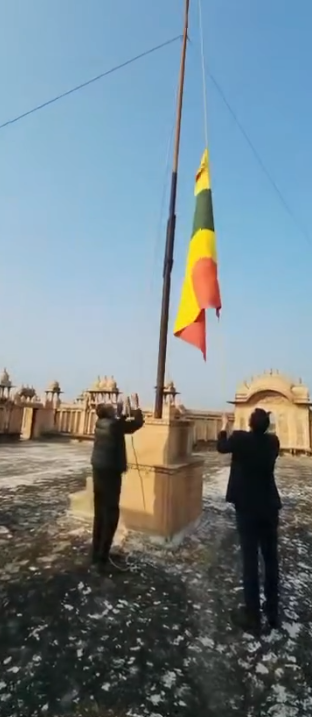 भरतपुर के पूर्व राजपरिवार में मोतीमहल पर रियासतकालीन झंडा लगाने को लेकर जारी विवाद थम गया है. पूर्व मंत्री ने मोती महल पर झंडा फहराया. इससे पहले, उन्होंने खुद सोशल मीडिया पोस्ट करते हुए चेतावनी दी थी, "13 फरवरी को महाराजा सूरजमल की जयंती के दिन मैं खुद झंडा लगाऊंगा. किसी में हिम्मत है तो रोक कर दिखा देना मुझे." साथ ही बेटे अनिरूद्ध सिंह के साथ पूर्व कैबिनेट मंत्री विश्वेंद्र सिंह की तस्वीर सामने आने के बाद 5 साल से चला आ रहा विवाद भी सुलझ चुका है.