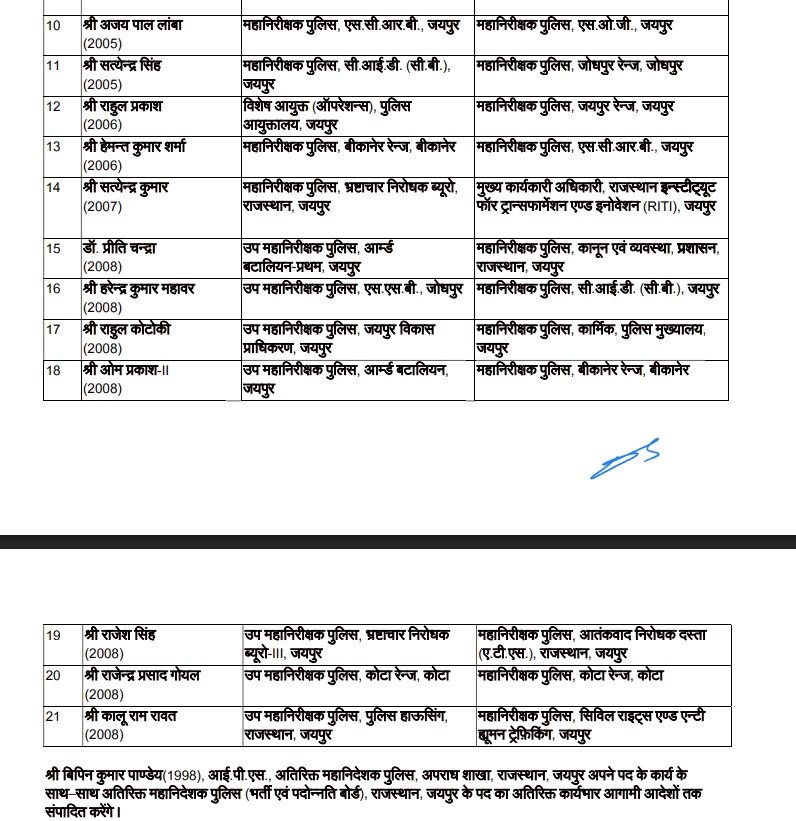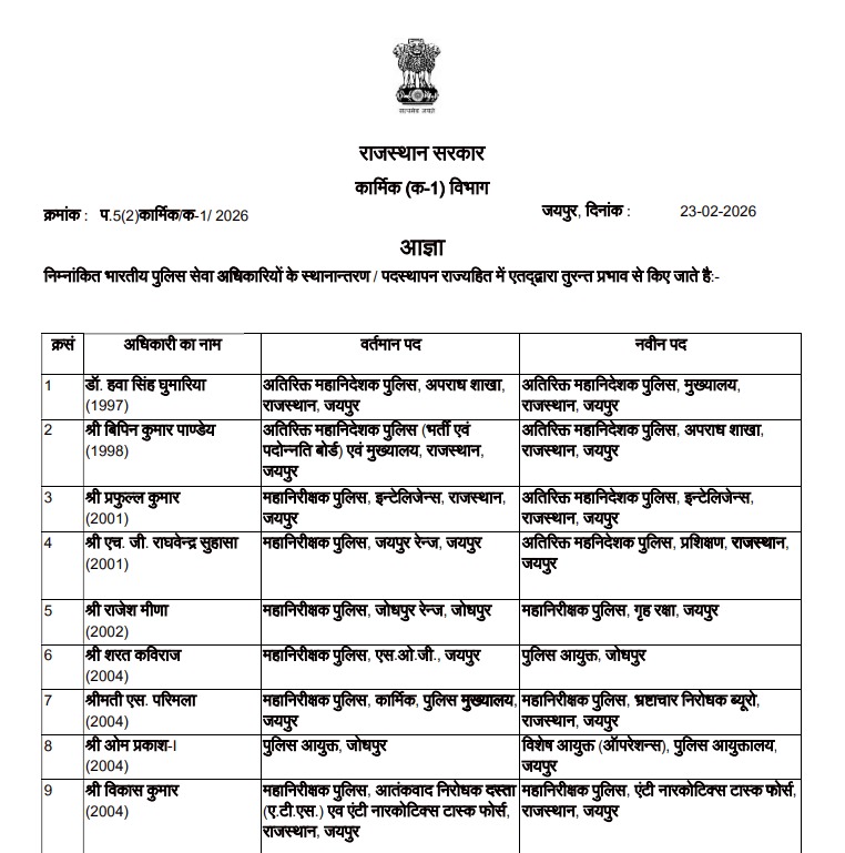 Rajasthan Breaking Live: 21 IPS अधिकारियों के तबादले