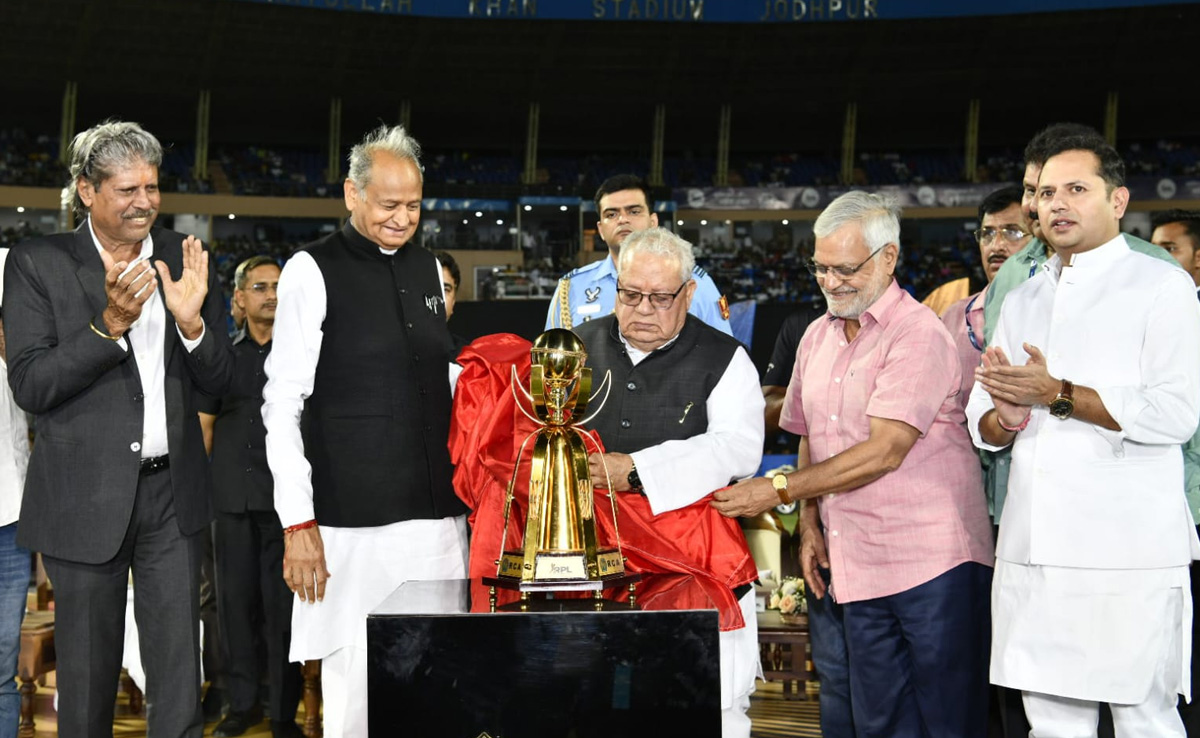 जोधुपर के बरकतुल्ला खां स्टेडियम में रविवार को रंगारंग राजस्थान प्रीमियर लीग का आगाज हो गया. राजस्थान क्रिकेट संघ द्वारा आयोजित आरपीएल 2023 का उद्घाटन राज्यपाल कलराज मिश्र ने किया. आईपीएल की तर्ज पर शुरू हुए क्रिकेट टूर्नामेंट के उद्घाटन के मौके पर मुख्यमंत्री अशोक गहलोत, राजस्थान विधानसभा अध्यक्ष डॉ. सी.पी. जोशी, ब्राण्ड एम्बेसेडर और पूर्व क्रिकेटर कपिल देव, राजस्थान क्रिकेट संघ के अध्यक्ष वैभव गहलोत, गायक रवीन्द्र उपाध्याय मौजूद रहे.