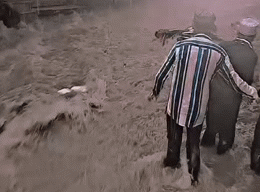 पानी का बहाव इतना तेज था कि वो अपने साथ एक ठेले को बहा ले गया.