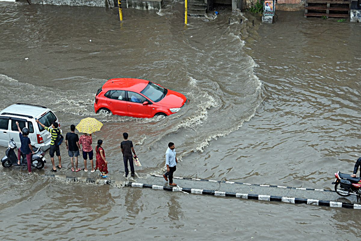 Rajasthan Weather Update: राजस्थान के भारी बारिश का दौर जारी है. बुधवार को राजधानी जयपुर सहित कई शहरों में तेज बारिश हुई. बारिश के बाद जयपुर में जगह-जगह जलभराव की स्थिति देखने को मिली. जयपुर में बारिश के बाद सड़कों पर घुटने तक पानी जमा हो गया. जयपुर में बुधवार शाम करीब 4 बजे से भारी बारिश शुरू हुई. कुछ ही देर बाद सड़कों पर नदी की तरह पानी बहता नजर आ रहा है. कार, बाइक समेत अन्य वाहन तैरते दिखाई देने लगे. तेज बारिश के कारण सचिवालय में घुटनों तक पानी भर गया है.