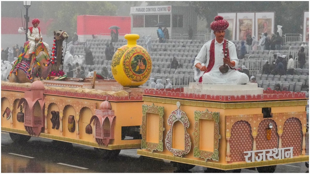 Rajasthan Tableau Live: दिल्ली के कर्तव्य पथ पर अब से कुछ ही देर बाद राजस्थान की झांकी का दीदार होगा. इस बार राजस्थान की थीम "मरुस्थल का स्वर्ण स्पर्श" रखी गई है, जो अपनी शाही विरासत और शिल्पकला से दुनिया को मंत्रमुग्ध करने के लिए तैयार है.