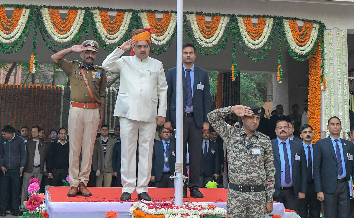 मुख्यमंत्री भजनलाल शर्मा ने मुख्यमंत्री आवास में झंडारोहण किया.