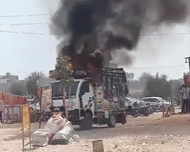 खाटूश्यामजी मेला परिसर में टेम्पो में लगी आग.