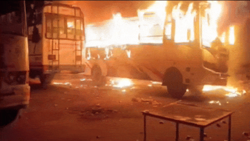 आज सोमवार को पीपल पूर्णिमा है. सावों की भरमार के चलते अधिकांश बसें शादी-विवाह में बुक हैं. आगजनी में एक बस का पिछला हिस्सा जल गया. इसके बावजूद एडवांस बुकिंग के कारण बस को शादी में भेजना पड़ा. यूनियन सदस्यों ने बताया कि यदि बसें नहीं भेजते तो शादी वाले लोगों की नाराजगी झेलनी पड़ती. विरोध का सामना करना पड़ता. मजबूरी में बस भेजनी पड़ी.