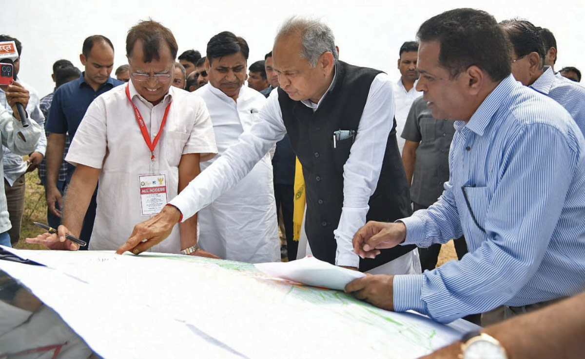 कोटा एयरपोर्ट का निरीक्षण करते मुख्यमंत्री गहलोत.