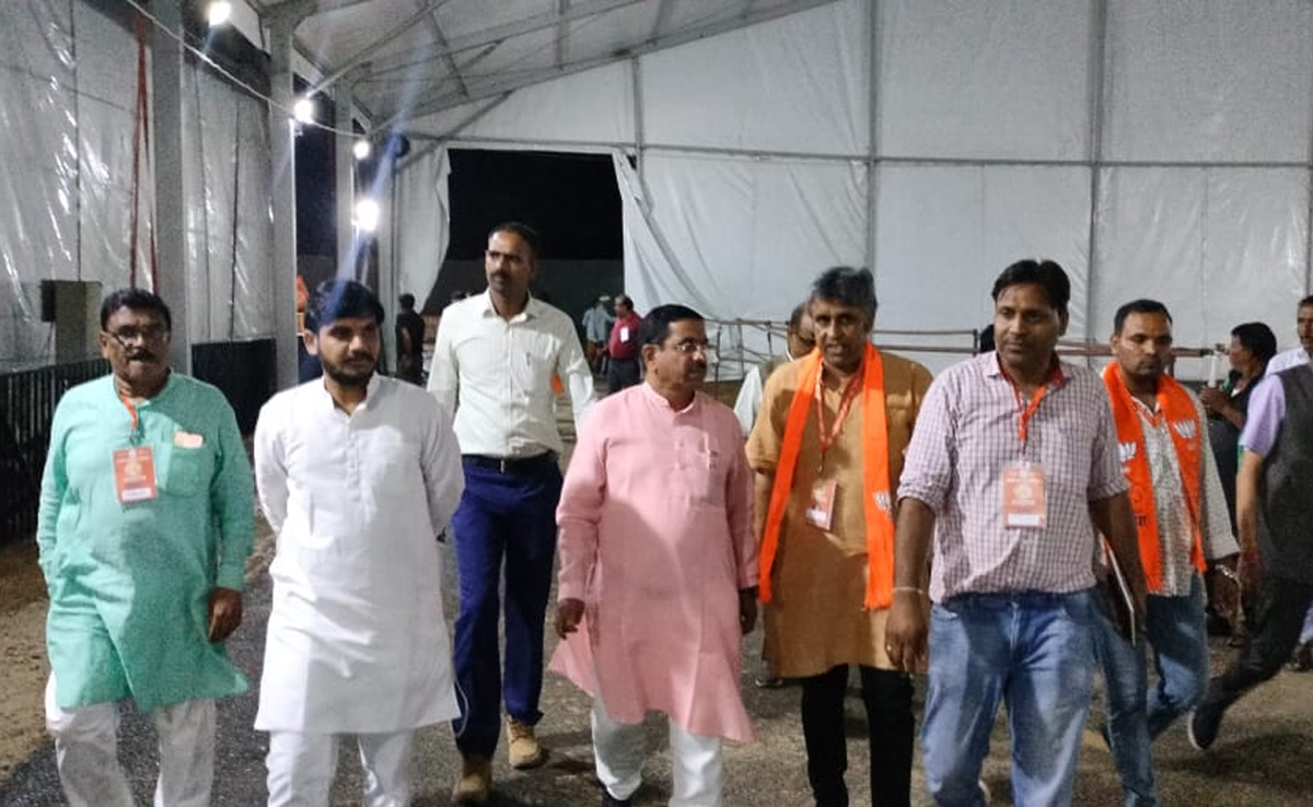 मंच का निरीक्षण करते चुनाव प्रभारी जोशी
