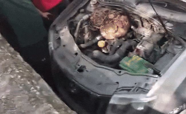 कार के बोनट पर धूप सेंकता मिला अजगर
