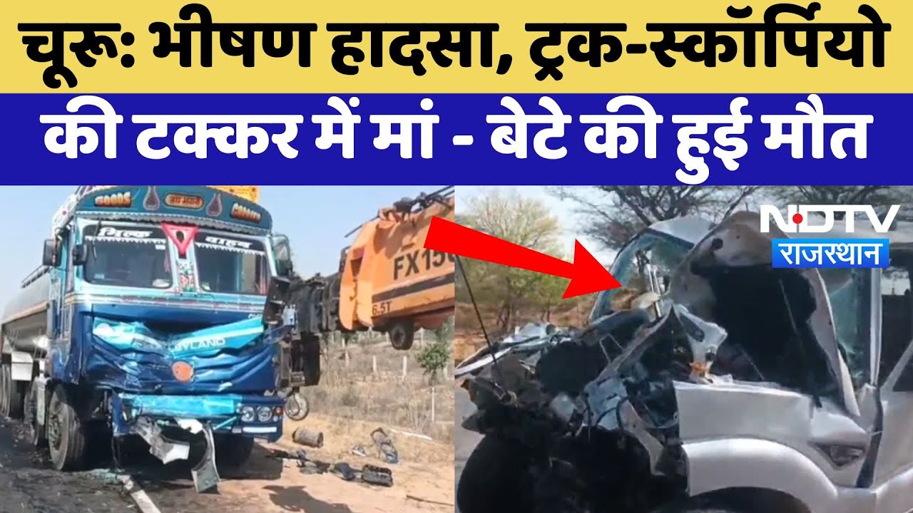 चूरू में भीषण हादसा, ट्रक-स्कार्पियो की टक्कर में मां-बेटे की मौत, कैंसर पीड़ित मां का इलाज करवाने ले जा रहा था बेटा