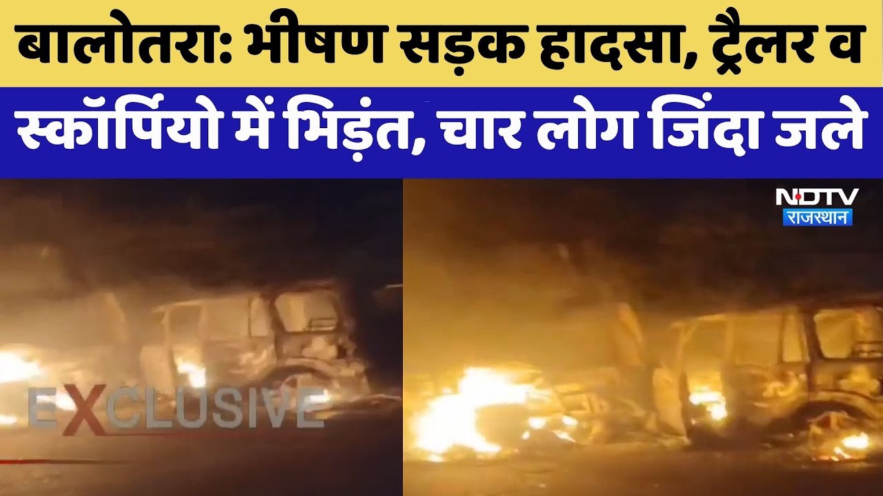 Rajasthan News: राजस्थान के बालोतरा-सिणधरी के पास ट्रेलर और स्कॉर्पियो में भीषण भिड़ंत टक्कर के बाद आग लग गई. जिसमें जिंदा जलने 4 लोगों की मौत हो गई.